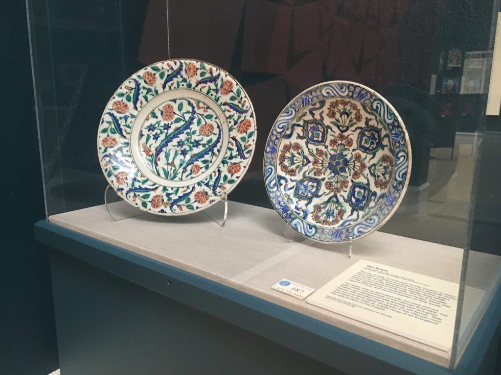 Welcome to the Art of the Islamic World Gallery at the George Walter Vincent Smith Art Museum! The gallery features objects created between the 9th and 19th centuries in Iran, Central Asia, India, Egypt, and Turkey. Although not necessarily religious in nature, the artwork found in this gallery is termed “Islamic” because it was produced in lands historically ruled, and inhabited by, Muslims. On display are numerous objects originally acquired by Springfield collector George Walter Vincent Smith as well as manuscripts, miniature paintings, and a contemporary art installation from the holdings of the nearby D’Amour Museum of Fine Arts. In this blog, we will explore highlights from the gallery.
