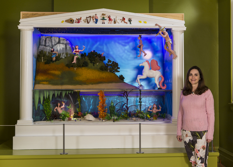 Mara Sfara is a representational painter and a contemporary sculptor, multi sensory kinetic artist and artistic jeweler. Her kinetic sculptures blend traditional artwork with new media creating her own unique fantasy worlds. Her kinetic sculpture In the Gardens of Mount Olympus is currently on display in the Plaster Cast Gallery of the George Walter Vincent Smith Museum. Sfara is currently also showing art at the Emillions Art gallery.