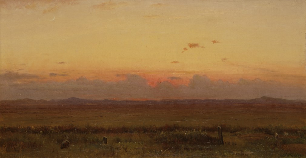Worthington Whittredge painted The Lonely Graves after traveling west for the first time in the summer of 1866. Accompanying General John Pope’s expedition out of Fort Leavenworth, Kansas, Whittredge traveled by horseback to Fort Kearney, Nebraska, and then on to Colorado and New Mexico. Near Fort Kearney the artist sketched the graves of travelers buried on the plains and when he returned to his New York studio he produced this painting based on his on-the-spot oil study. “I had never seen the plains or anything like them,” he wrote. “They impressed me deeply. I cared more for them than for the mountains.” In depicting the simple graves, alone on the vast plains in somber light, Whittredge conveyed the transience of life and the power of the American landscape.