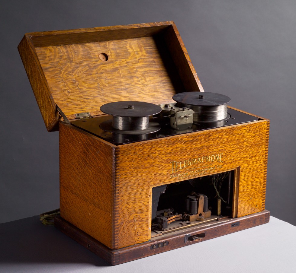 During the first half of the 20th century, inventors like Thomas Edison used their knowledge of physics to develop devices that could preserve sound on discs and wax cylinders. In 1903, the American Telegraphone Company was formed to manufacture the telegraphone, a clever invention that used magnetism to record sound on long spools of metal wire. The machine was employed as a dictation device as well as an automatic telephone recorder.