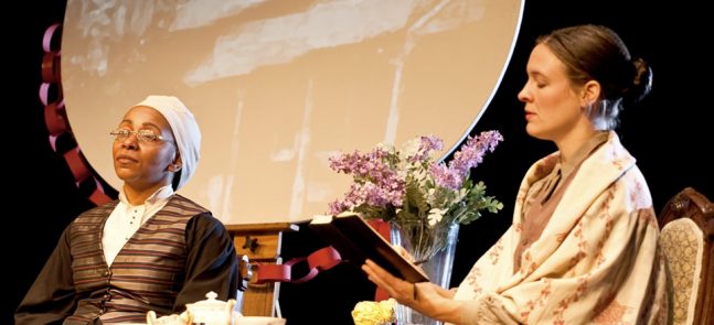 Two actors make words jump off the page and stories come to life through dramatic readings and theater games.