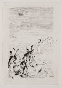 Famous for bright colors and loose brush strokes, the Impressionists rejected traditional painting styles in favor of a new way of seeing and understanding modern life. These artists left their studios, taking to the outdoors, streets and cafes in order to create “impressions” of what they saw rather than attempting precise imitations of nature. This exhibition, which features prints by French and American artists, will explore how artists translated the impressionist painting style into black and white prints. The fluid lines and soft forms characteristic of impressionist prints are exemplified in this show through works by Jean-Louis Forain, Pierre-Auguste Renoir, Childe Hassam, and others.