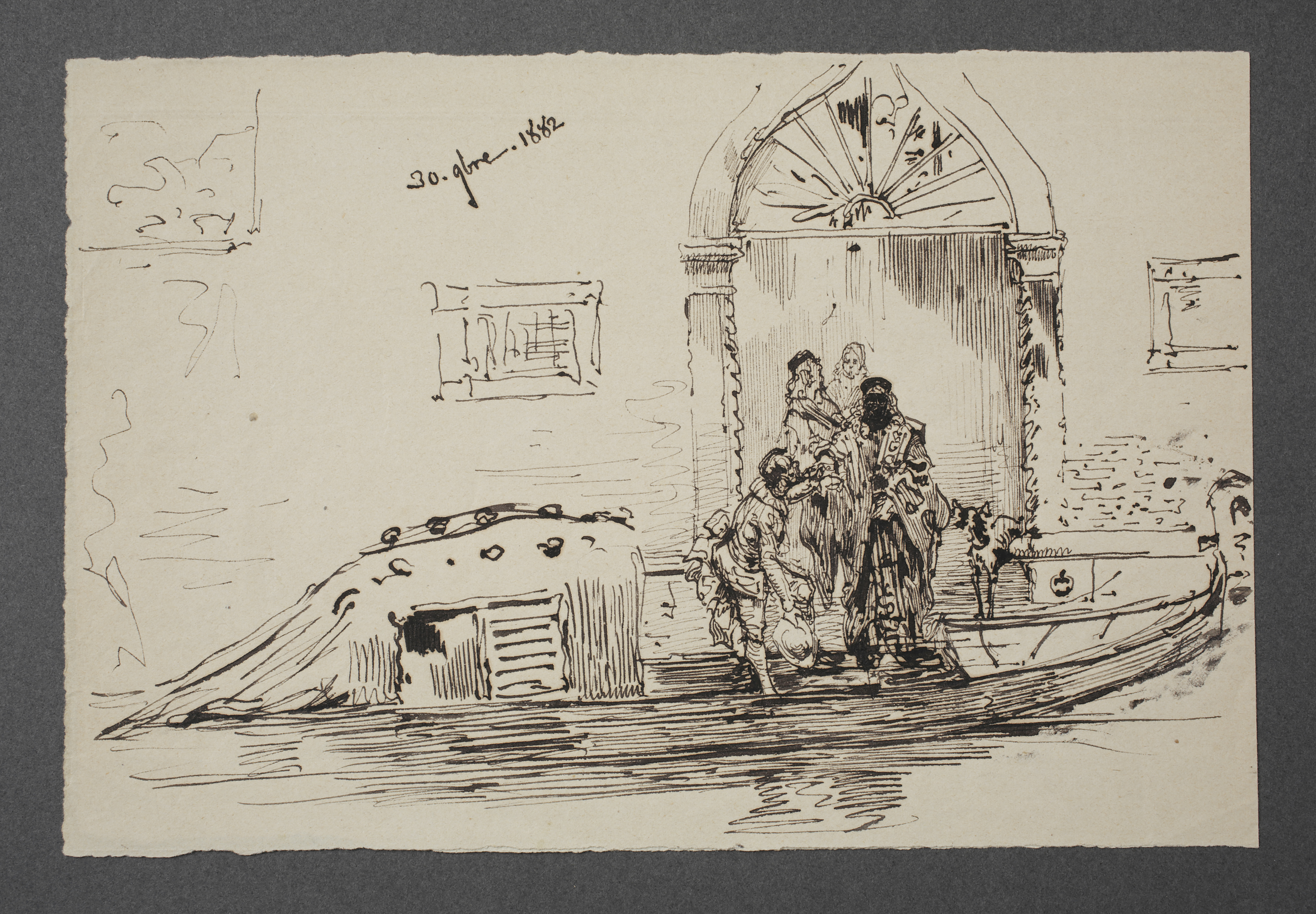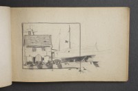 Designed to be easily portable, a sketchbook is often kept in an artist’s pocket and offers a personal glimpse into the artist’s process. Drawings and notes in sketchbooks vary from travel sketches and nature drawings to figure studies and copies after the old masters. Occasionally expense accounts and lists of images were also included. Some sketchbooks are self-conscious, with every page signed, in anticipation of a public audience. Others were filled with spontaneous, hastily-drawn sketches that were often used to work out composition elements for a larger art work. Still others reveal the progression of an idea or were intended to be viewed as a whole.